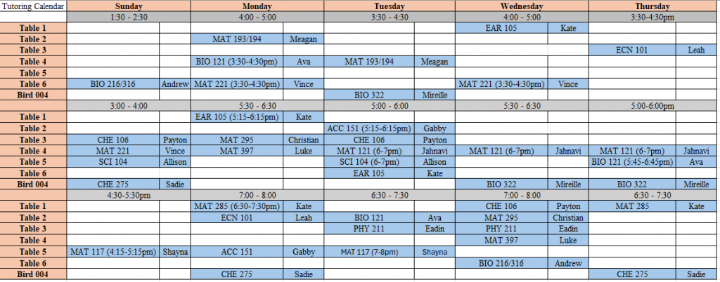 Group Tutoring sessions will begin Monday September 8th. Sign up for the group tutoring sessions is available through Penji but registration is not required. Students can instead just drop into the sessions held in the lower level of Bird Library.